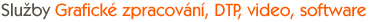 Máme k dispozici několik vysokorychlostně propojených a úzce spolupracujících moderních DTP pracovišť schopných zpracovat grafické příp. video podklady v jakémkoli formátu a na všech platformách (MAC, PC, Linux, UNIX, a další).